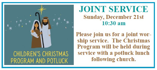 Joint Service & Christmas Program and Potluck 12/21